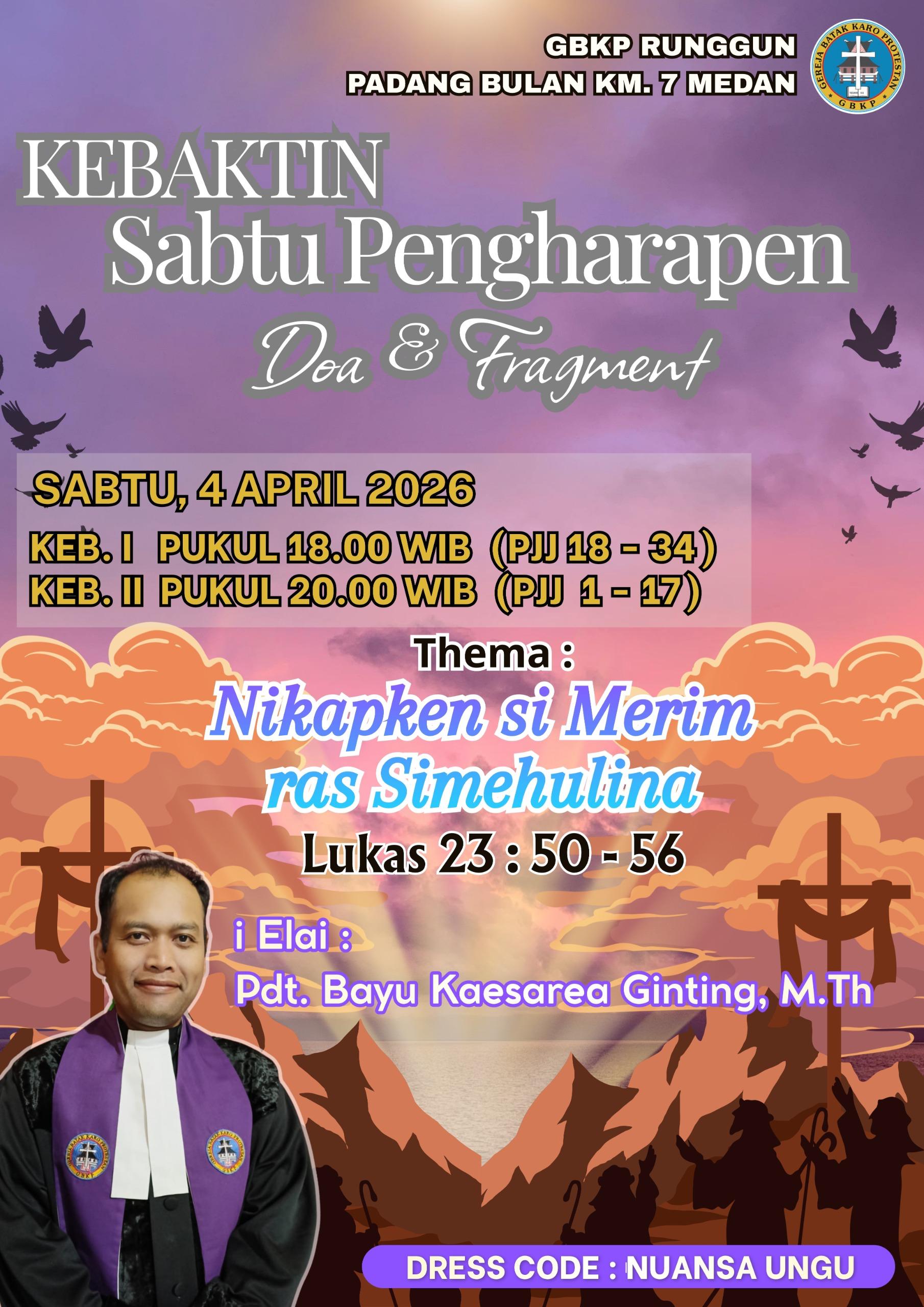 Ibadah Sabtu Pengarapen, 04 April 2026